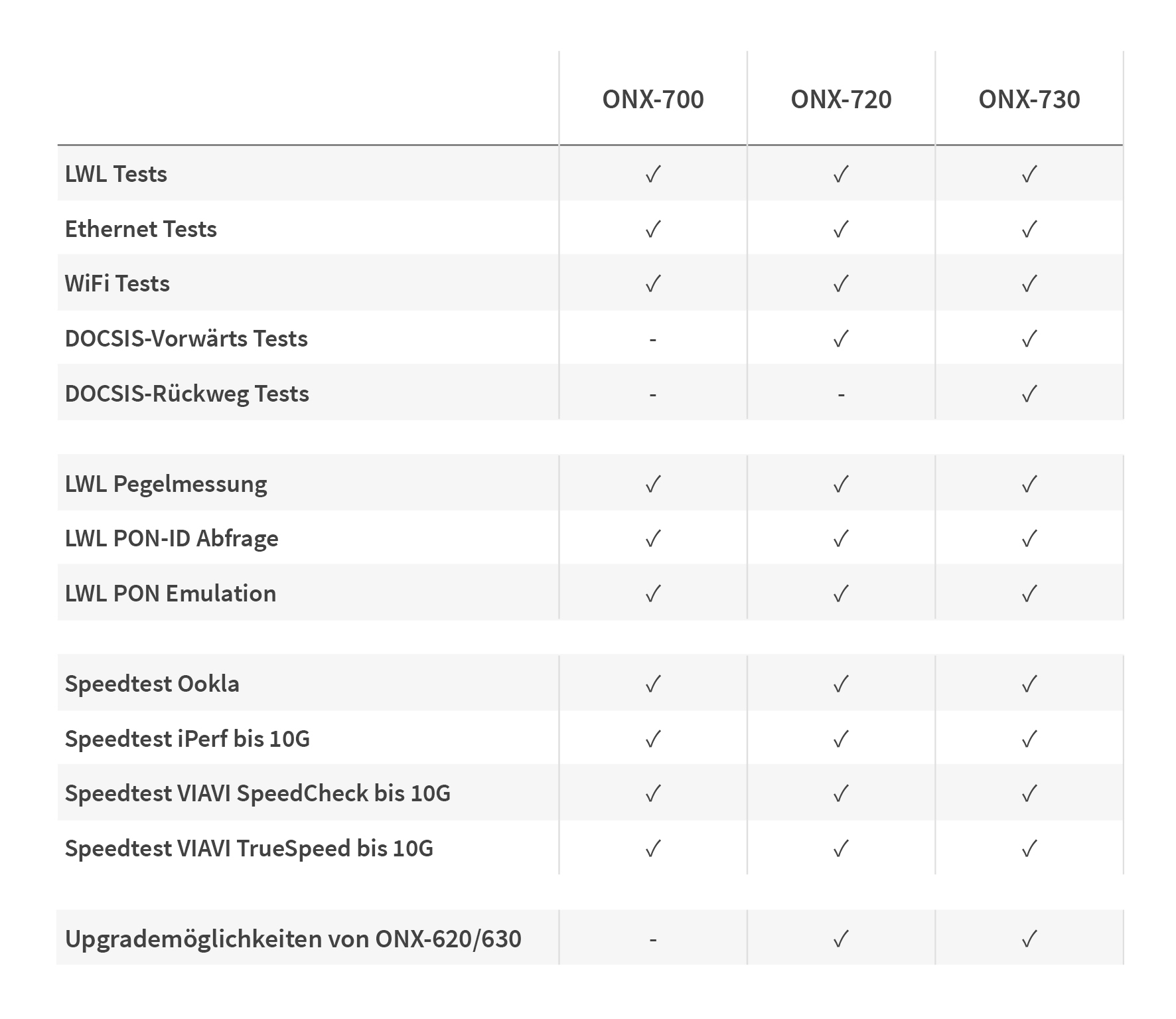 Die OneExpert ONX-Serie im Vergleich